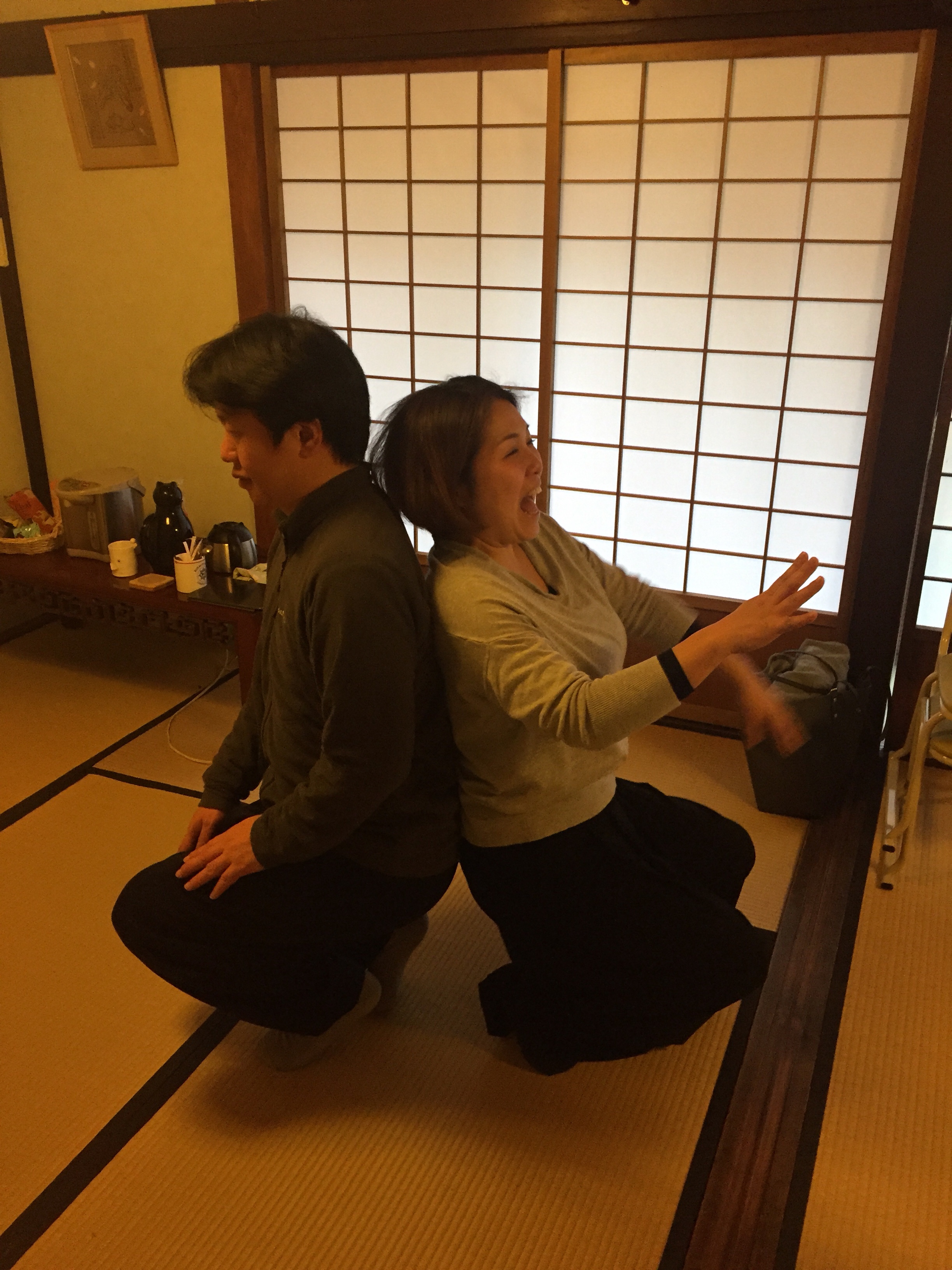または、背中あわせに座り一緒に立ち上がってみるとか。