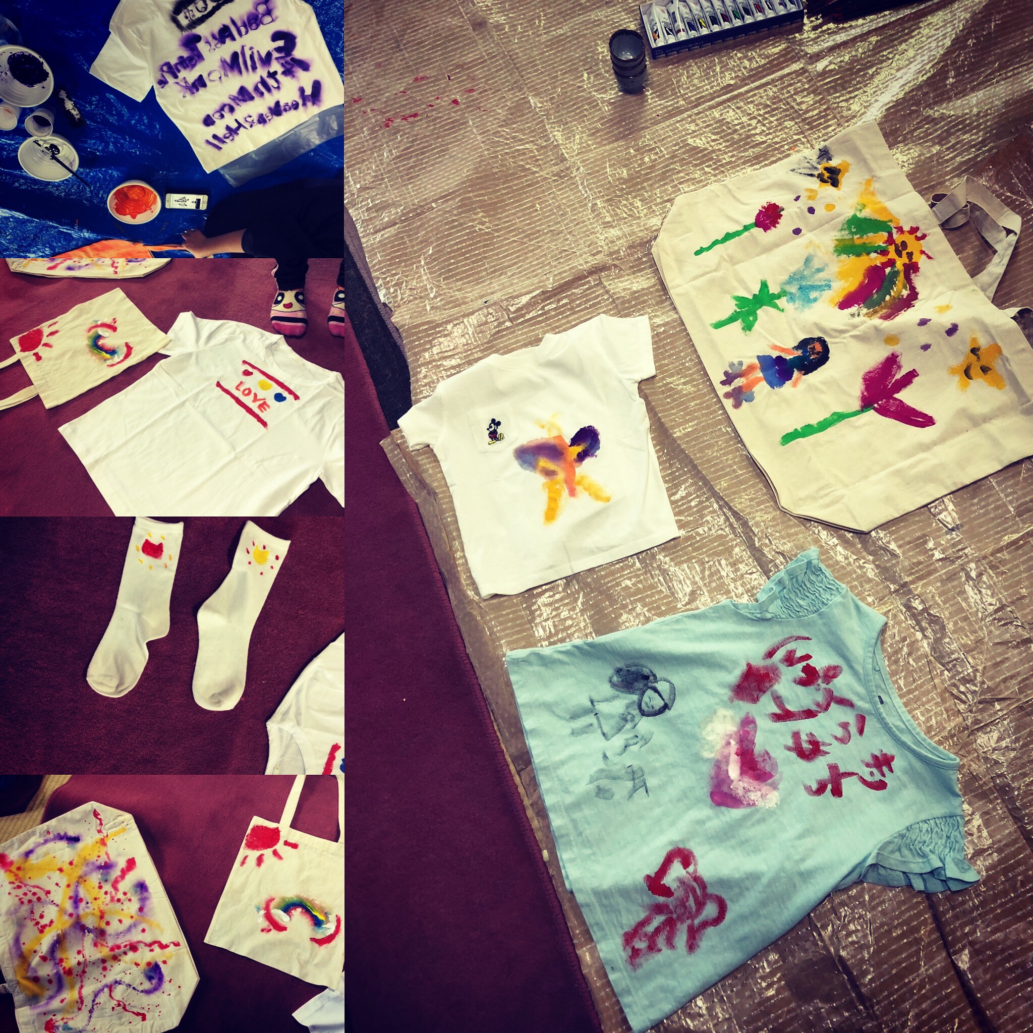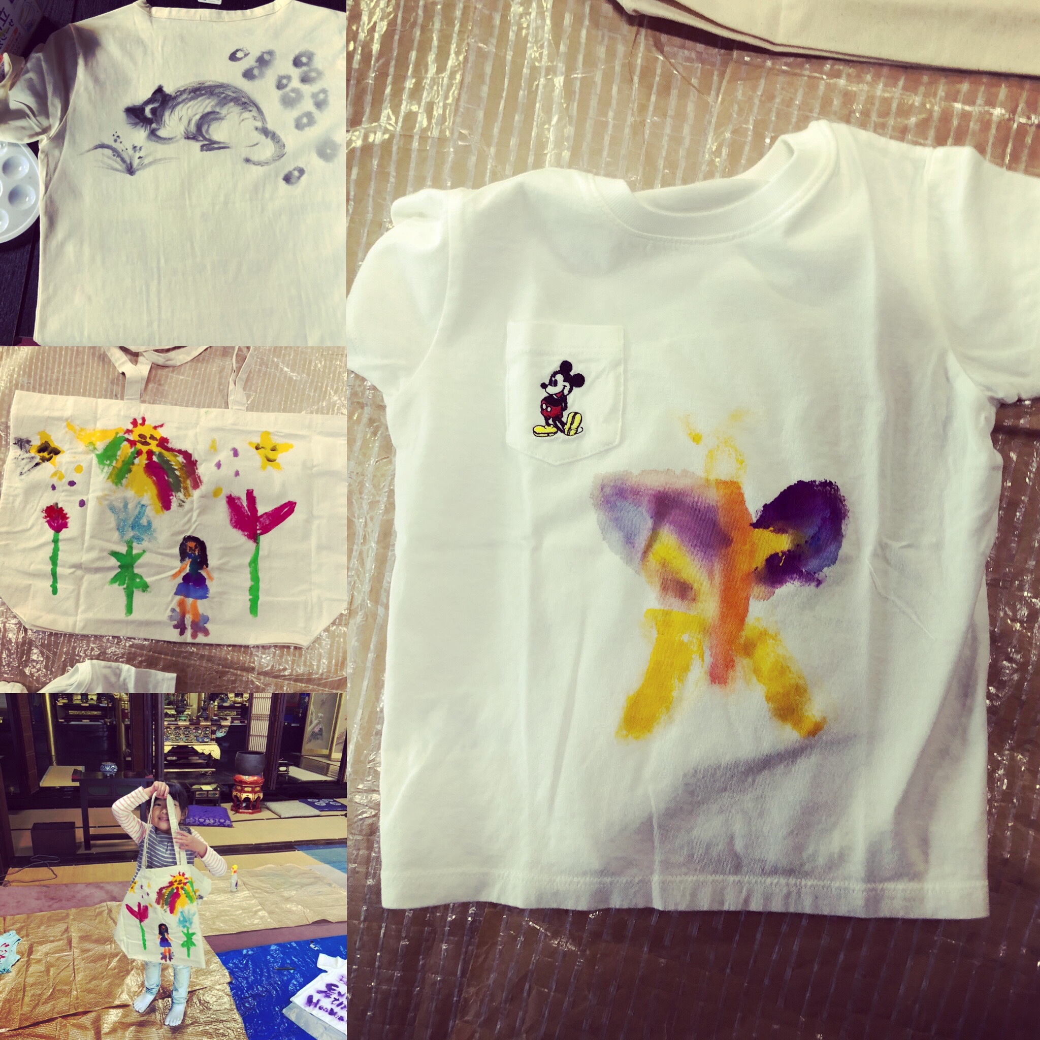 おつとめとご法話の後はアナマ 和恵さんをお招きして、布などに自由にお絵かきをして、オリジナルグッズを作りました。